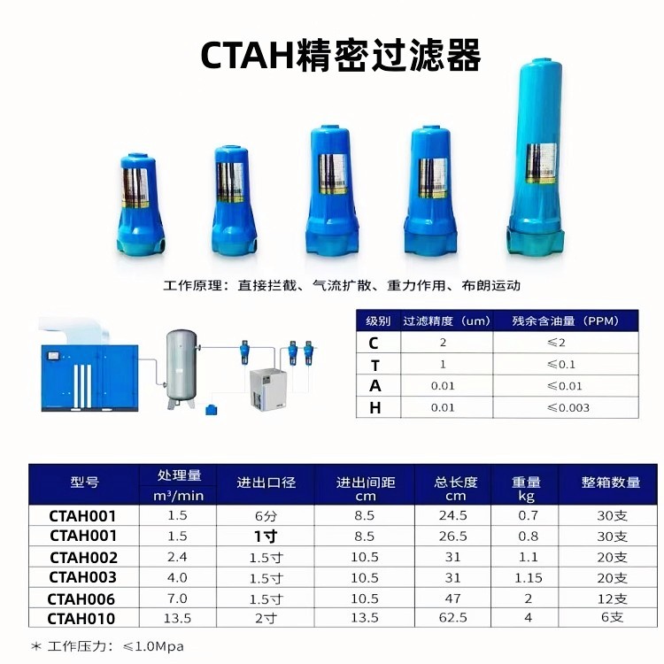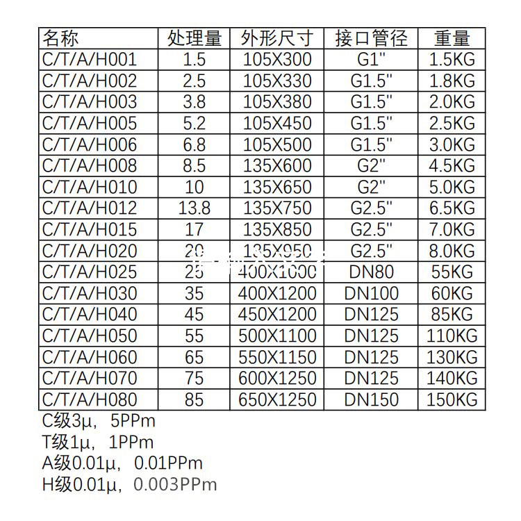 精密过滤器C型,T型,A型,H型参数如下: